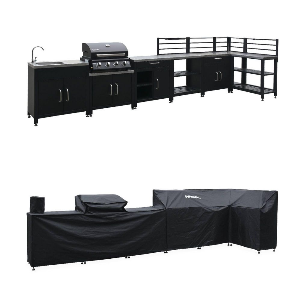 À la recherche d'une cuisine extérieure à la fois élégante et pratique ? Notre modèle GRIMAUD répond parfaitement à vos attentes pour les jours ensoleillés. Composée de 8 modules en acier inoxydable noir, elle arbore un design intemporel tout en offrant une solidité idéale pour une utilisation en extérieur.