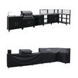Les + produit : - Barbecue 4 feux- Nombreux rangements- Design intemporel - Housse de protectionÀ la recherche d'une cuisine extérieure à la fois élégante et pratique ? Notre modèle GRIMAUD répond parfaitement à vos attentes pour les jours ensoleillés. Composée de 8 modules en acier inoxydable noir,