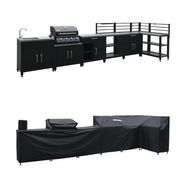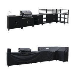 Ensemble de meubles de cuisine extérieure en acier inoxydable 8 modules avec barbecue au gaz 4 brûleurs et housse de protection