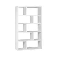 Etagère bibliothèque asymétrique 5 niveaux 10 compartiments. casiers. effet bois blanc. L 111.2 x P 39 x H 190cm