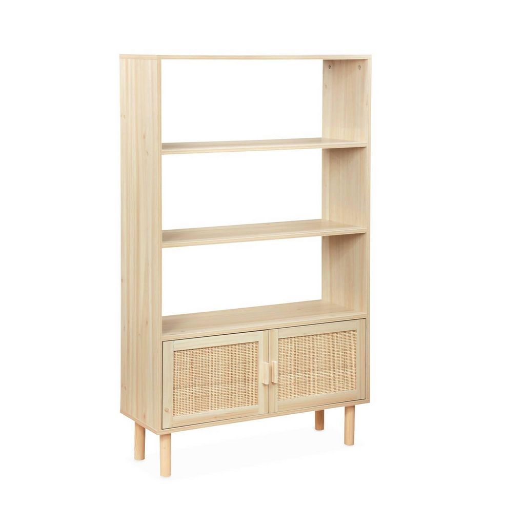 Aussi vintage que dans l',air du temps, cette étagère vous offre un bel espace de rangement. Elle associe harmonieusement le décor bois et le cannage pour apporter douceur et fraicheur dans votre intérieur. Sur ses 3 étagères, vous pourrez ranger votre collection de livre et exposer vos objets déco préférés. Conçue avec des matériaux de qualité, sa structure en panneaux stratifiés garantit stabilité et durabilité. <,br/>,Caractéristiques
