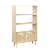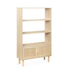 Étagère bibliothèque décor bois et cannage - Camargue - 3 niveaux. 2 portes