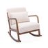 Fauteuil à bascule design en bois et tissu. bouclettes blanches. structure hévéa teinté noyer foncé