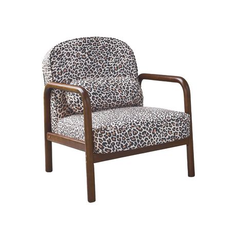Fauteuil scandinave arrondi bois d'hévéa et imprimé léopard