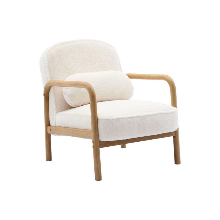 Fauteuil scandinave arrondi bois d'hévéa et tissu effet fausse fourrure
