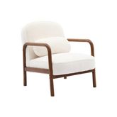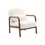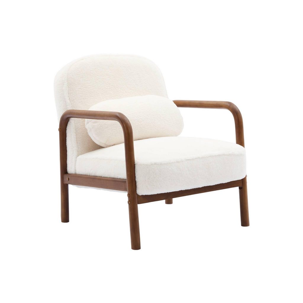 Fauteuil scandinave bois d'hévéa teinté noyer clair et tissu fausse fourrure