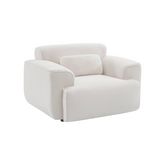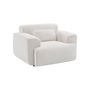 Fauteuil tissu bouclette blanche. lignes arrondis. coussin fourni. Wallas. L 116 x P 97 x H 73cm