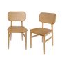 Lot de 2 chaises en bois d'hévéa. forme courbée. finition brossée
