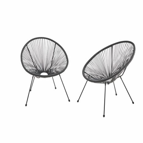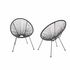 Lot de 2 fauteuils design Oeuf - Acapulco Noir - Fauteuils 4 pieds design rétro. cordage plastique. intérieur / extérieur