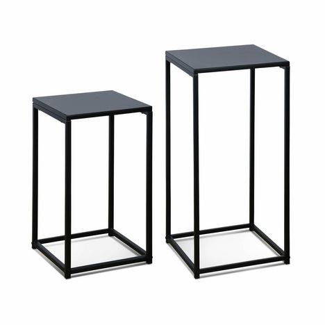 Lot de 2 tables d'appoint gigognes noires - Industrielle - bouts de canapé 34x34x74cm / 30x30x54cm