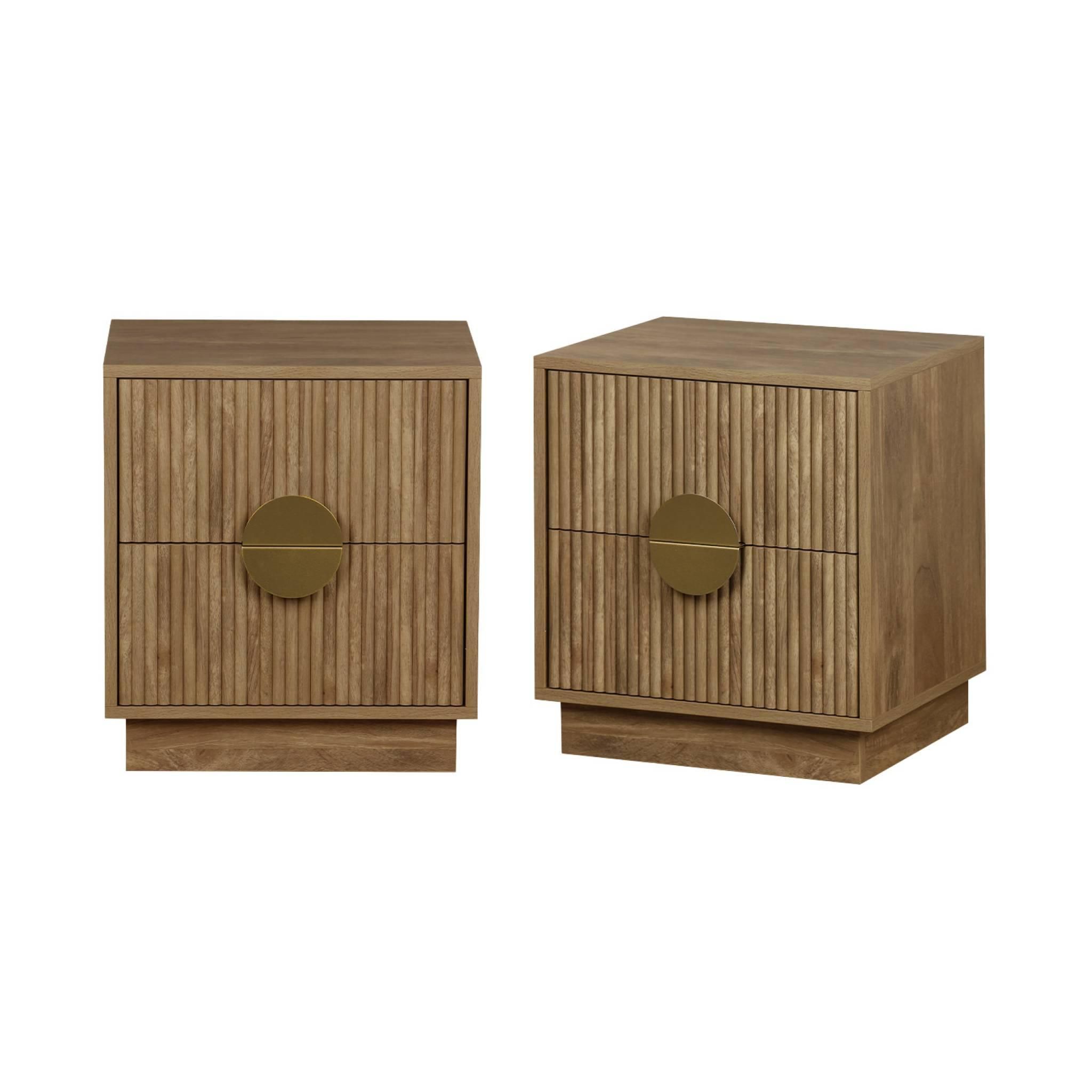 Lot de 2 tables de chevet 2 tiroirs décor bois de manguier rainuré. poignées en métal doré. L42 x P38 x H50cm
