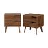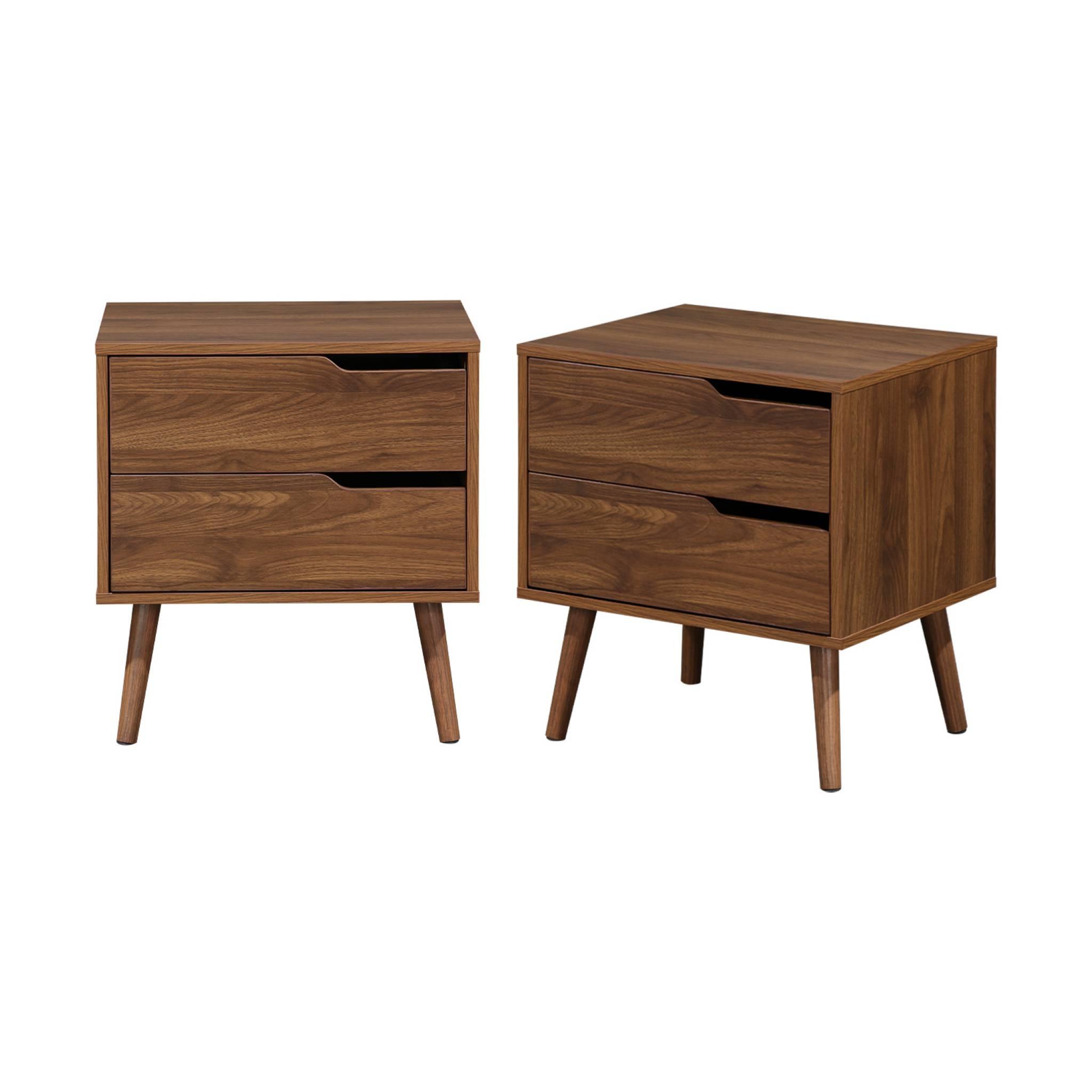 Ces tables de chevet à la couleur bois de noyer apporteront un style chaleureux dans votre chambre à coucher. Avec leur pieds compas en pin massif et leur teinte foncée, ces tables de nuit s'inspirent du design scandinave et vintage. Les 2 tiroirs sont pratiques pour ranger vos accessoires et garder tout ce dont vous avez besoin pour passer une bonne nuit. Pour encore plus de modernité, ils sont dotés d'encoches pour l'ouverture. Le plateau pourra accueillir une jolie lampe de chevet pour compléter votre décoration.