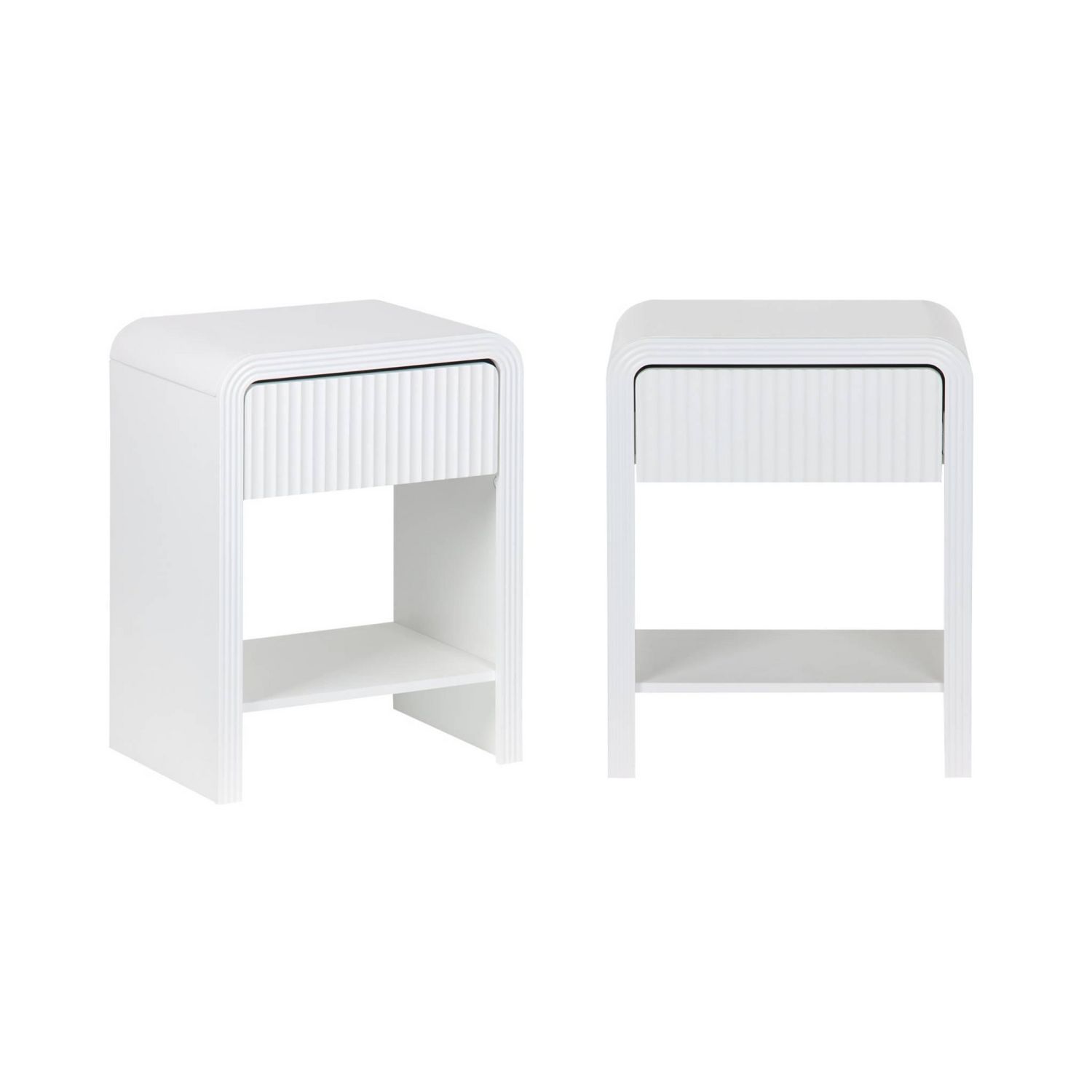 Lot de 2 tables de chevet effet bois blanc rainuré 1 tiroir. 1 étagère