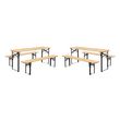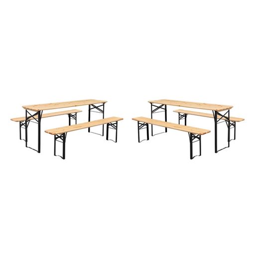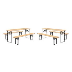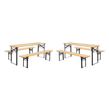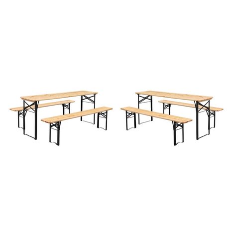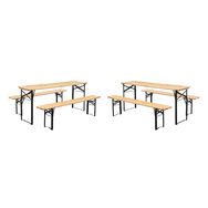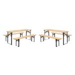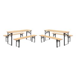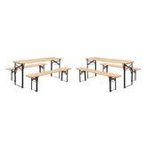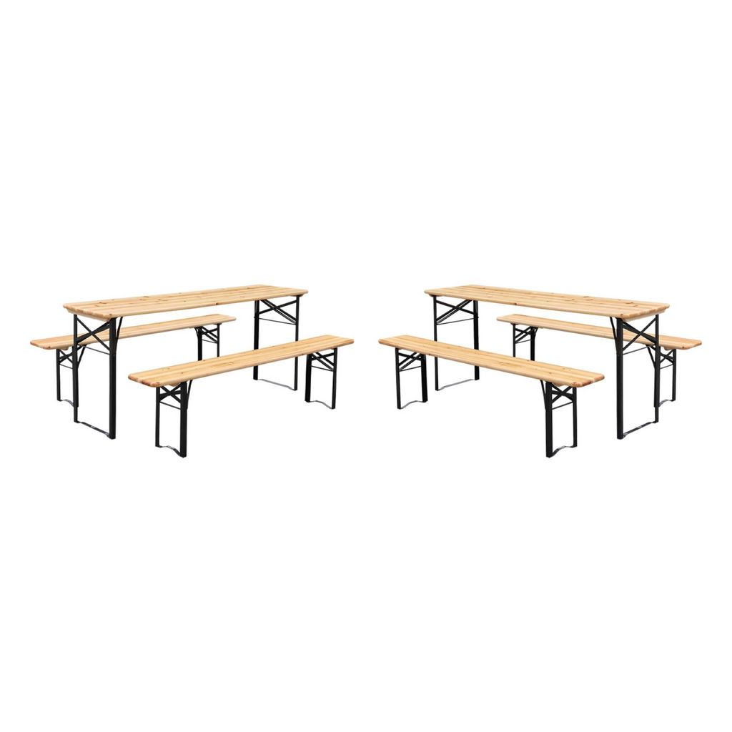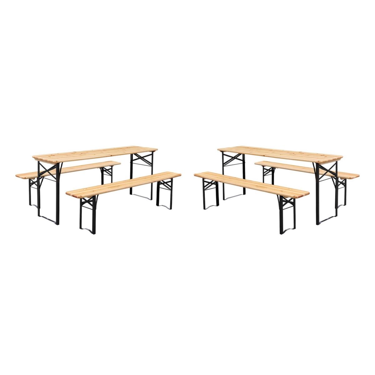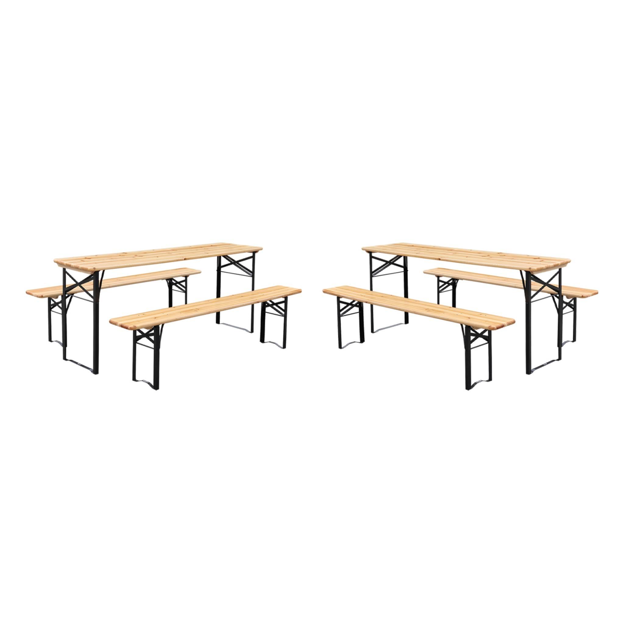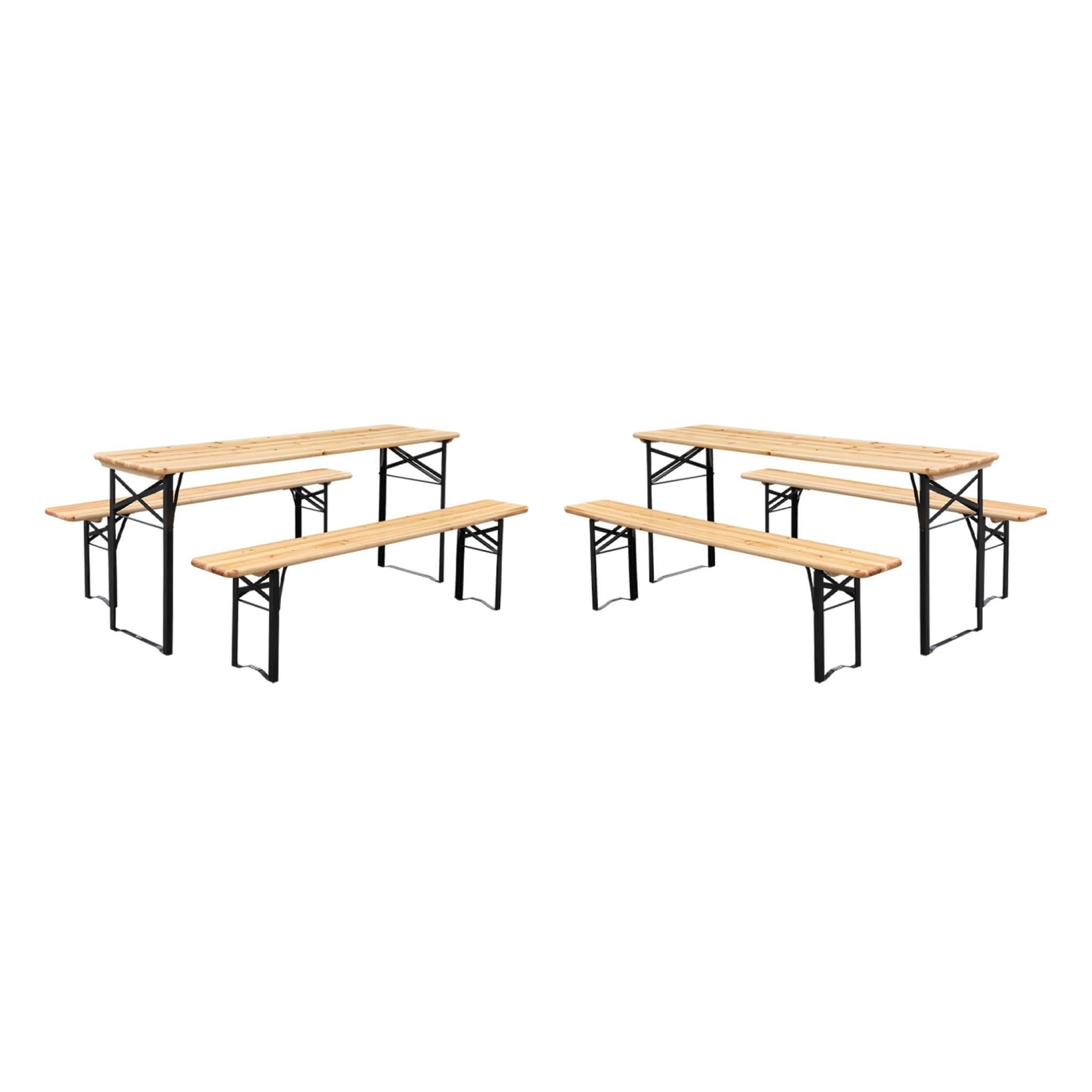 Lot de 2 tables de réception pliantes bois de sapin 2 bancs naturel Bayonne esprit brasserie 12 places