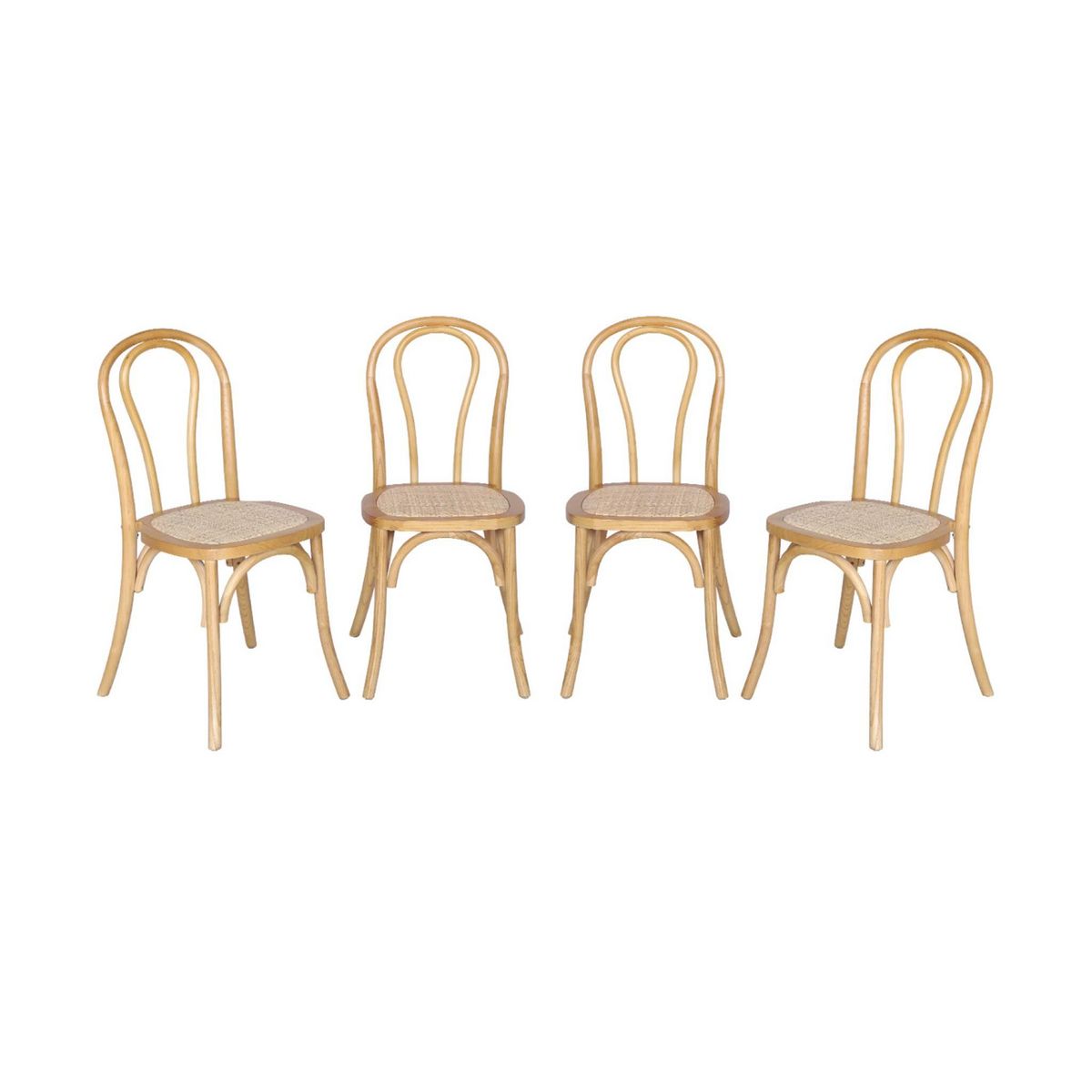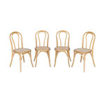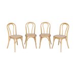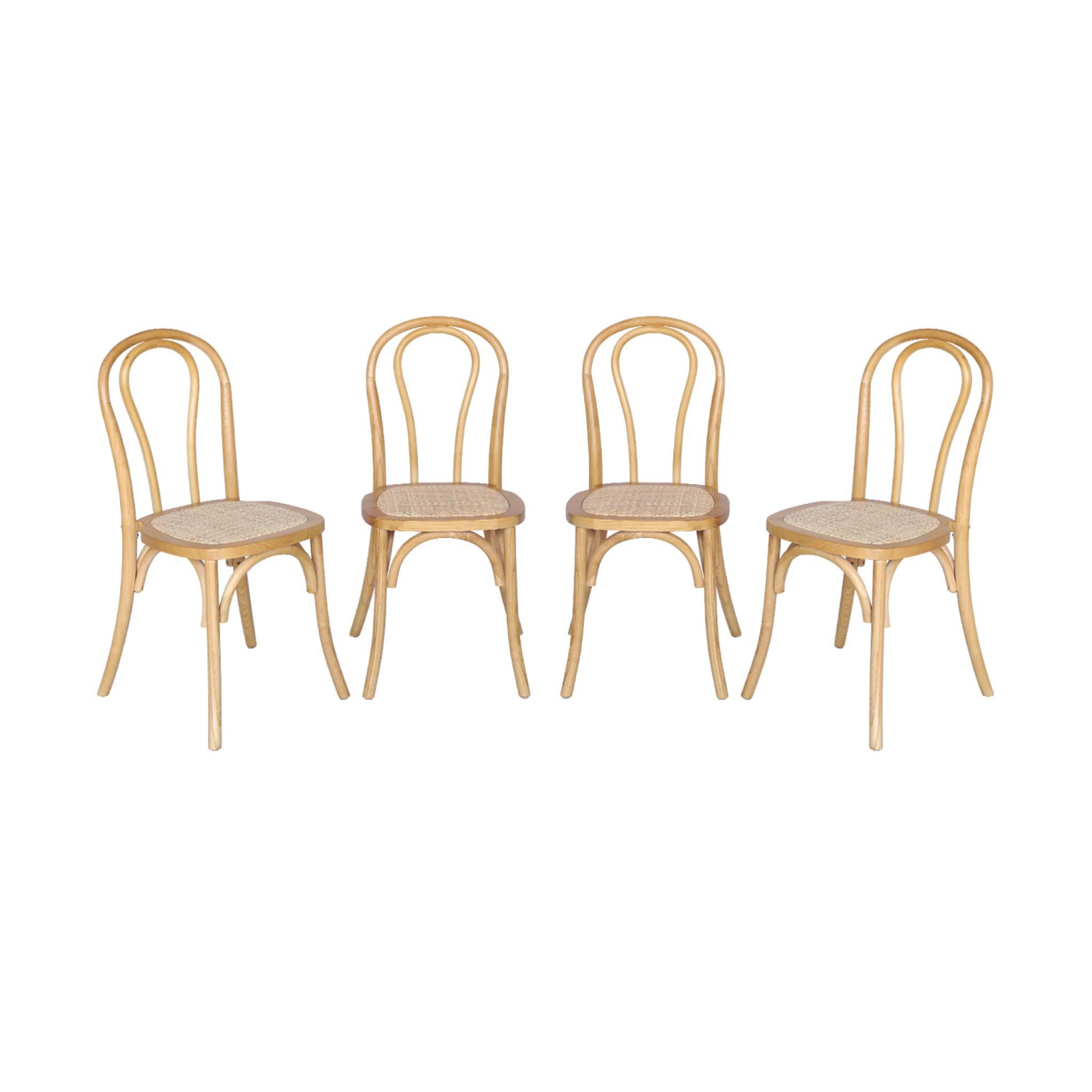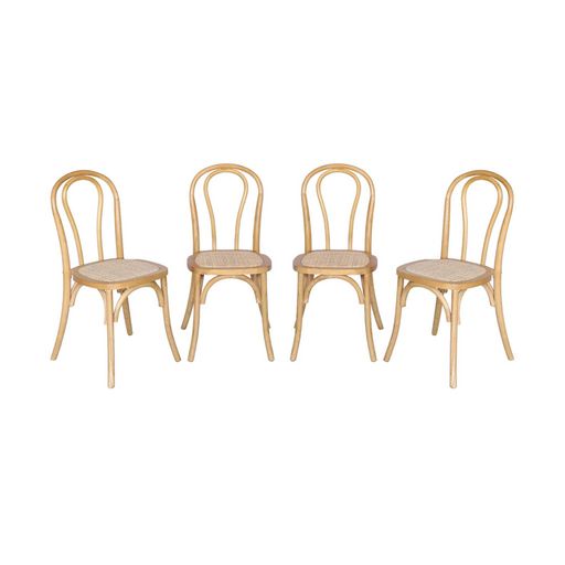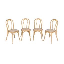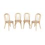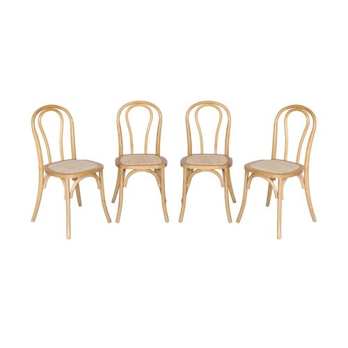 Lot de 4 chaises vintage en bois avec assise en rotin et dossier arrondi. coloris naturel. L 48 x P 49.5 x H 90cm