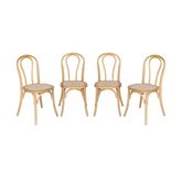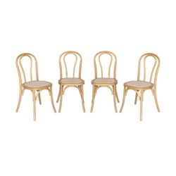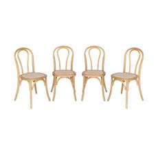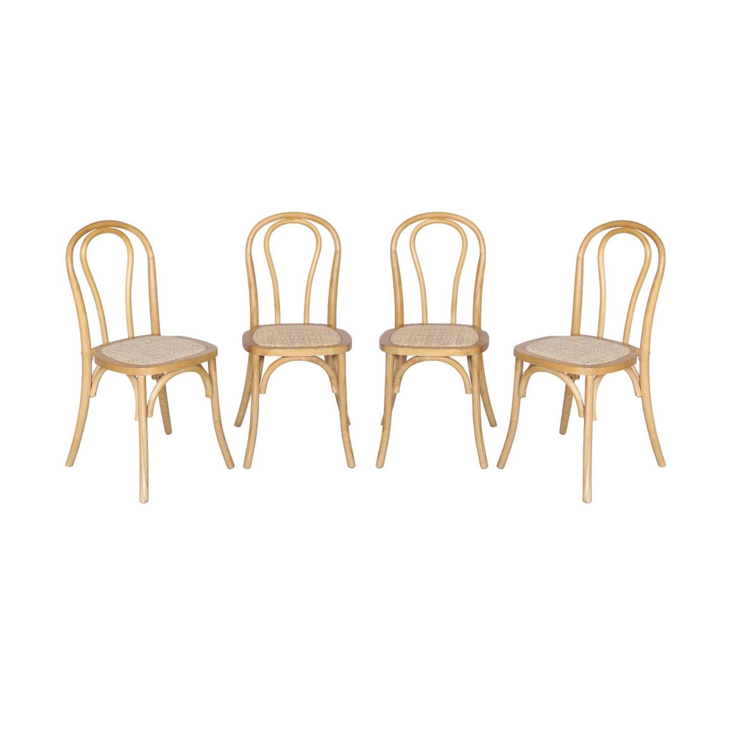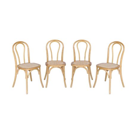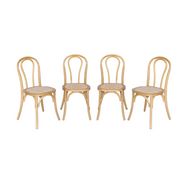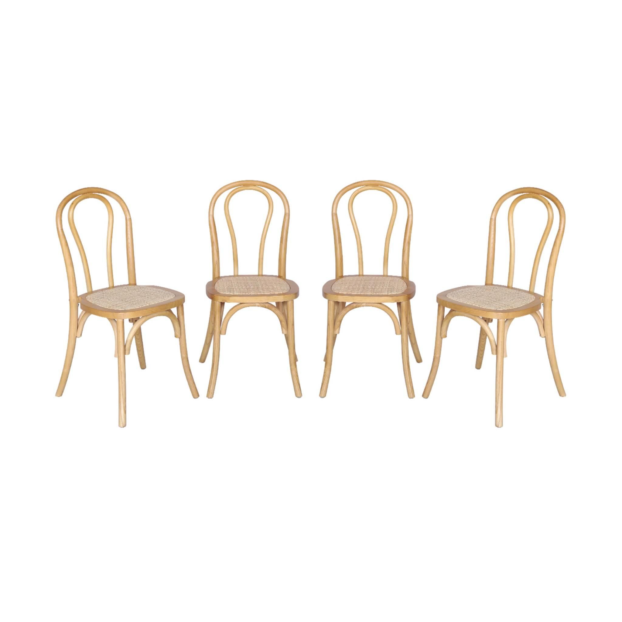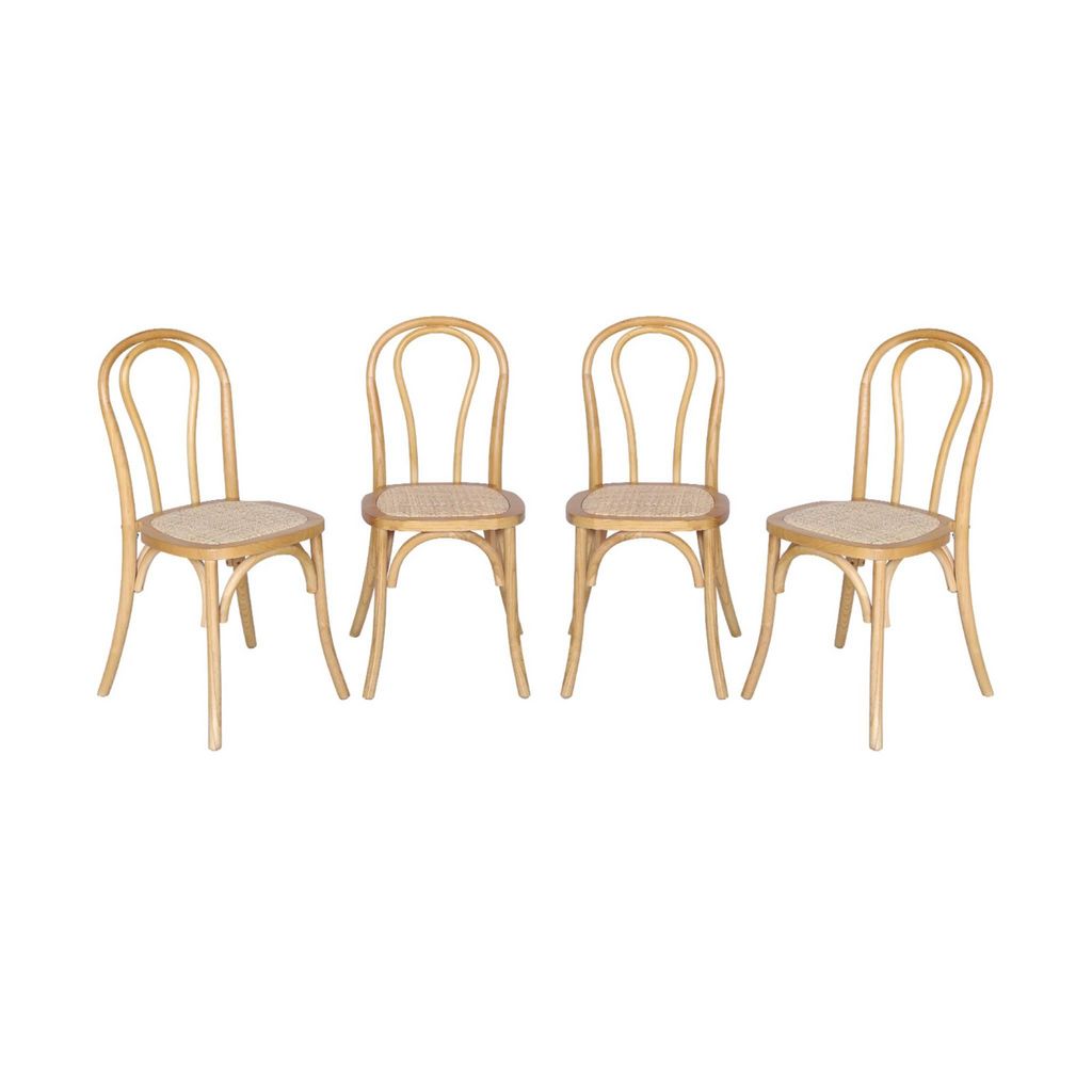 Lot de 4 chaises vintage en bois avec assise en rotin et dossier arrondi. coloris naturel. L 48 x P 49.5 x H 90cm
