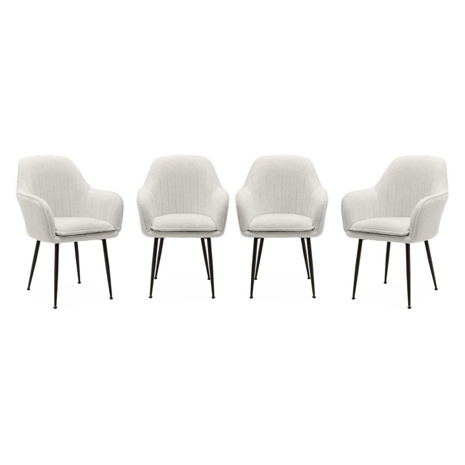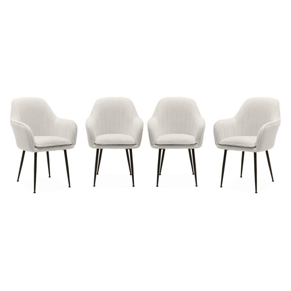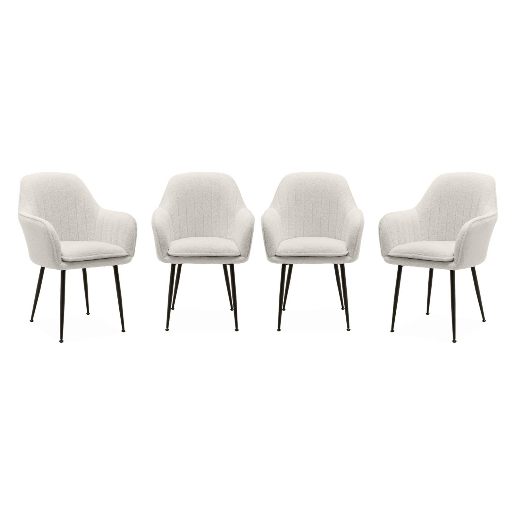 Lot de 4 fauteuils en bouclette et pieds en métal noir mat. Shella L 57 x P 59 x H 84.5