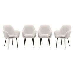 Ces fauteuils sont le complément parfait de n'importe quelle pièce ! Leur design simple et vintage ne manqueront pas de vous faire craquer ! Leur joli tissu bouclette ainsi que leur assise douillette sont la combinaison parfaite pour ajouter une touche de confort et de chaleur à votre pièce. Quant à leurs pieds en métal noir mat réglables, ils apporteront un look moderne à ce lot de 4 fauteuils qui s'accordera avec n'importe quel décor. Le coussin d'assise est déhoussable pour un entretien plus facile. Que vous les utilisiez comme fauteuil dans votre salon ou comme assises pour votre coiffeuse dans votre chambre à coucher, ces fauteuils matelassés apporteront à coup sûr une touche d'élégance à votre intérieur. N'attendez plus et succombez à leur charme dès aujourd'hui !