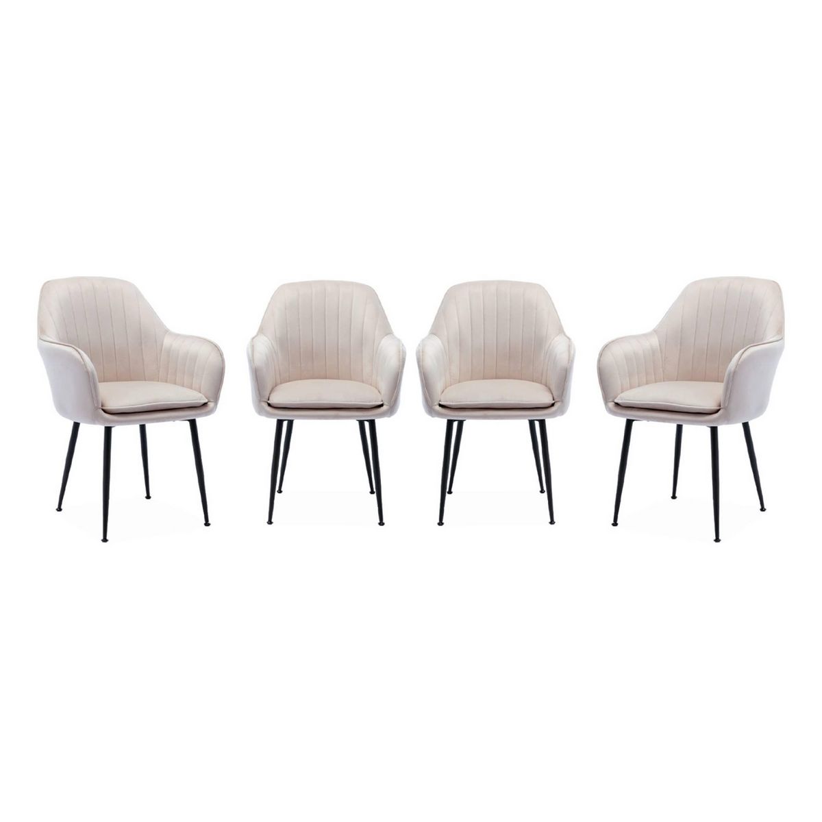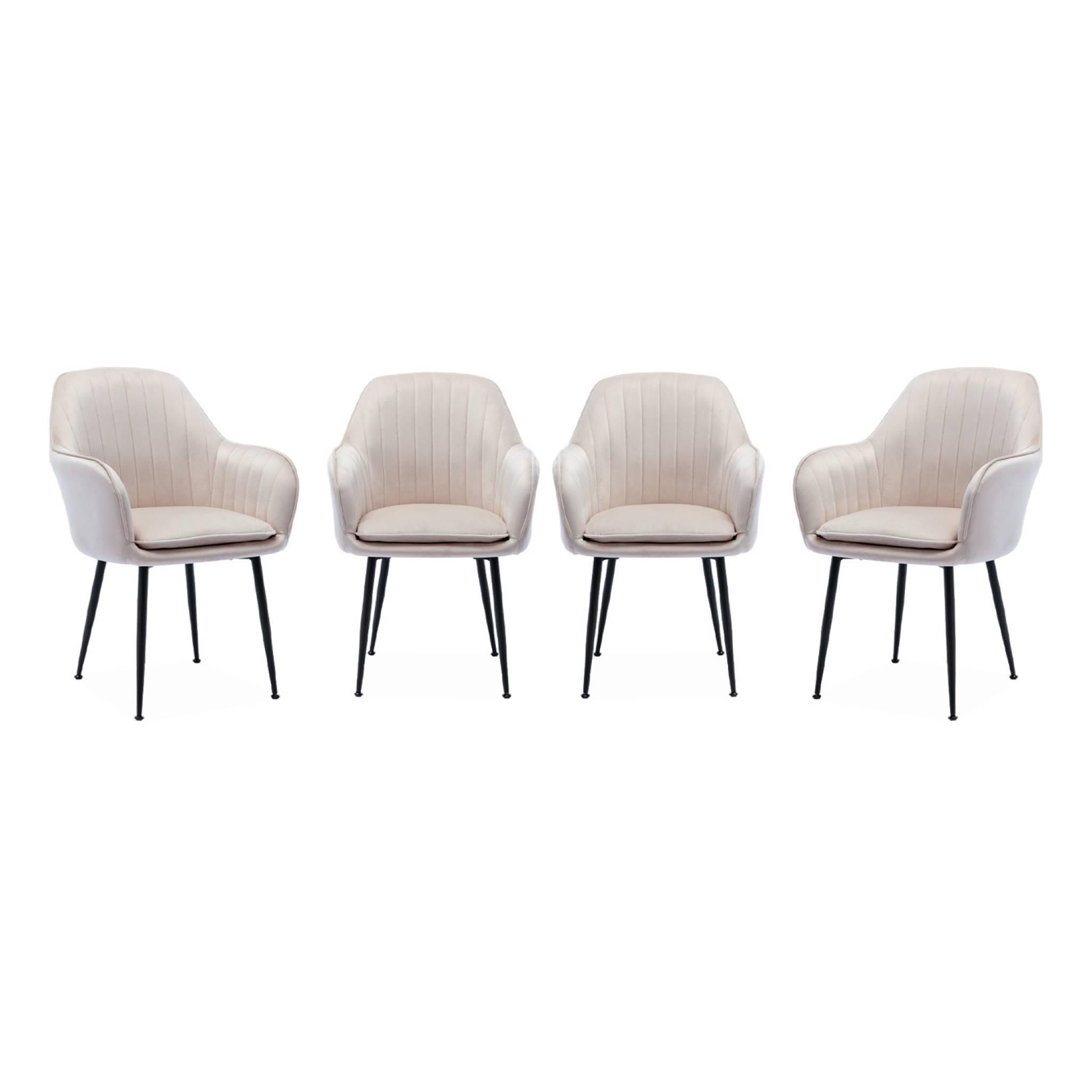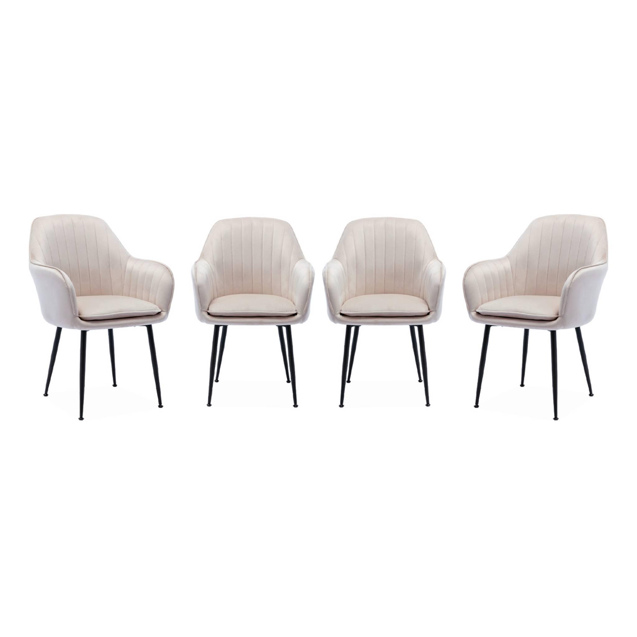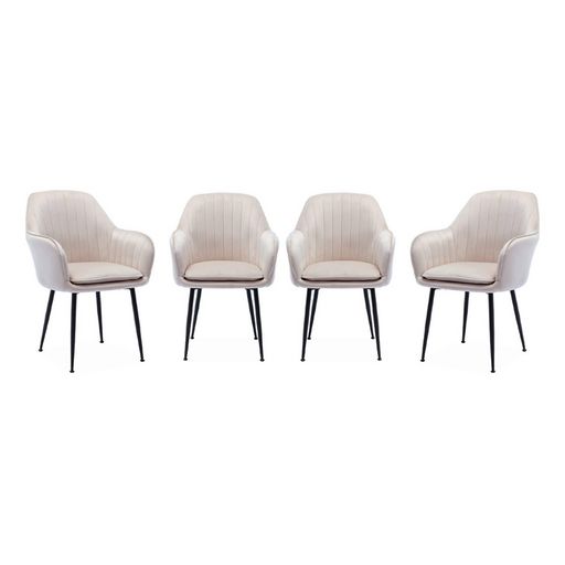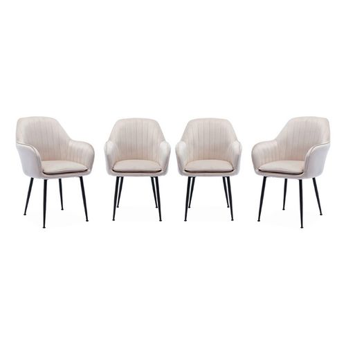 Lot de 4 fauteuils en velours blanc cassé et pieds en métal noir. Shella L 57 x P 59 x H 84.5