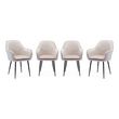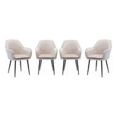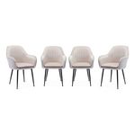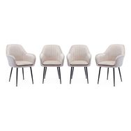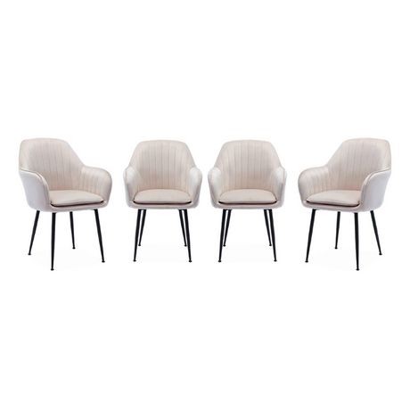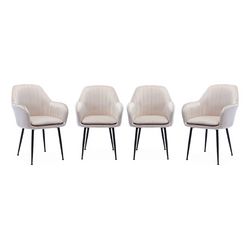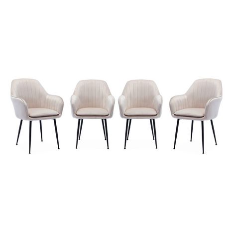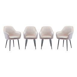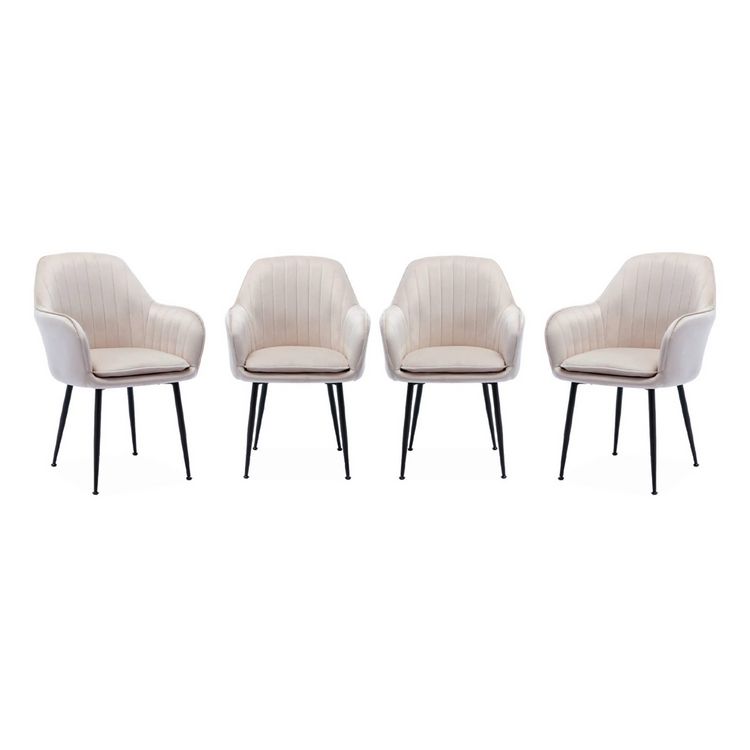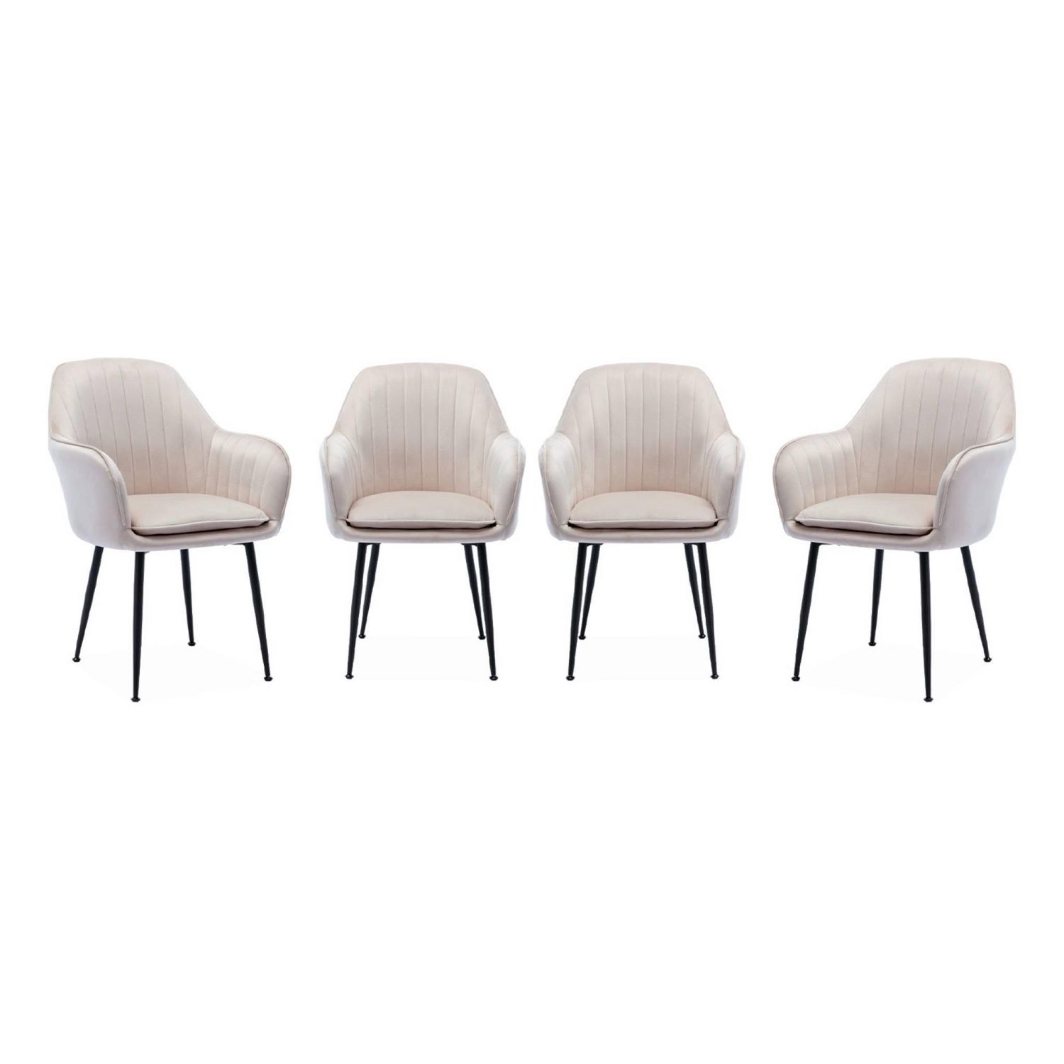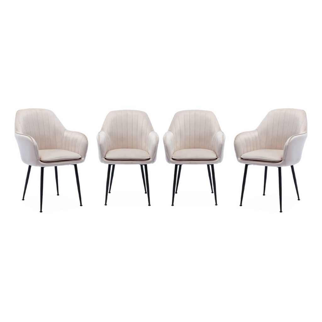 Lot de 4 fauteuils en velours blanc cassé et pieds en métal noir. Shella L 57 x P 59 x H 84.5