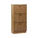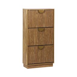 Meuble à chaussures décor bois de manguier rainuré 3 abattants - L 60 x P 25 x H 121 cm - Celian