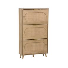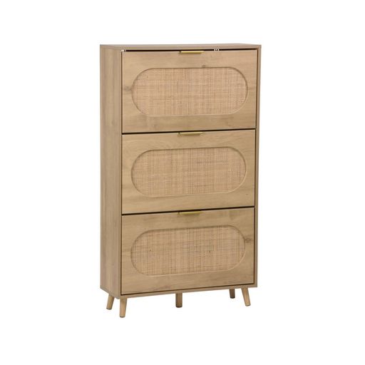 Meuble à chaussures décor bois et cannage 3 abattants. poignées en métal - L 75 x P 26 x H 131 cm - Eva