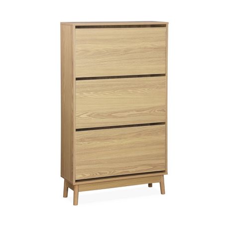 Meuble à chaussures scandinave décor bois 3 portes abattantes capacité 18 paires de chaussures