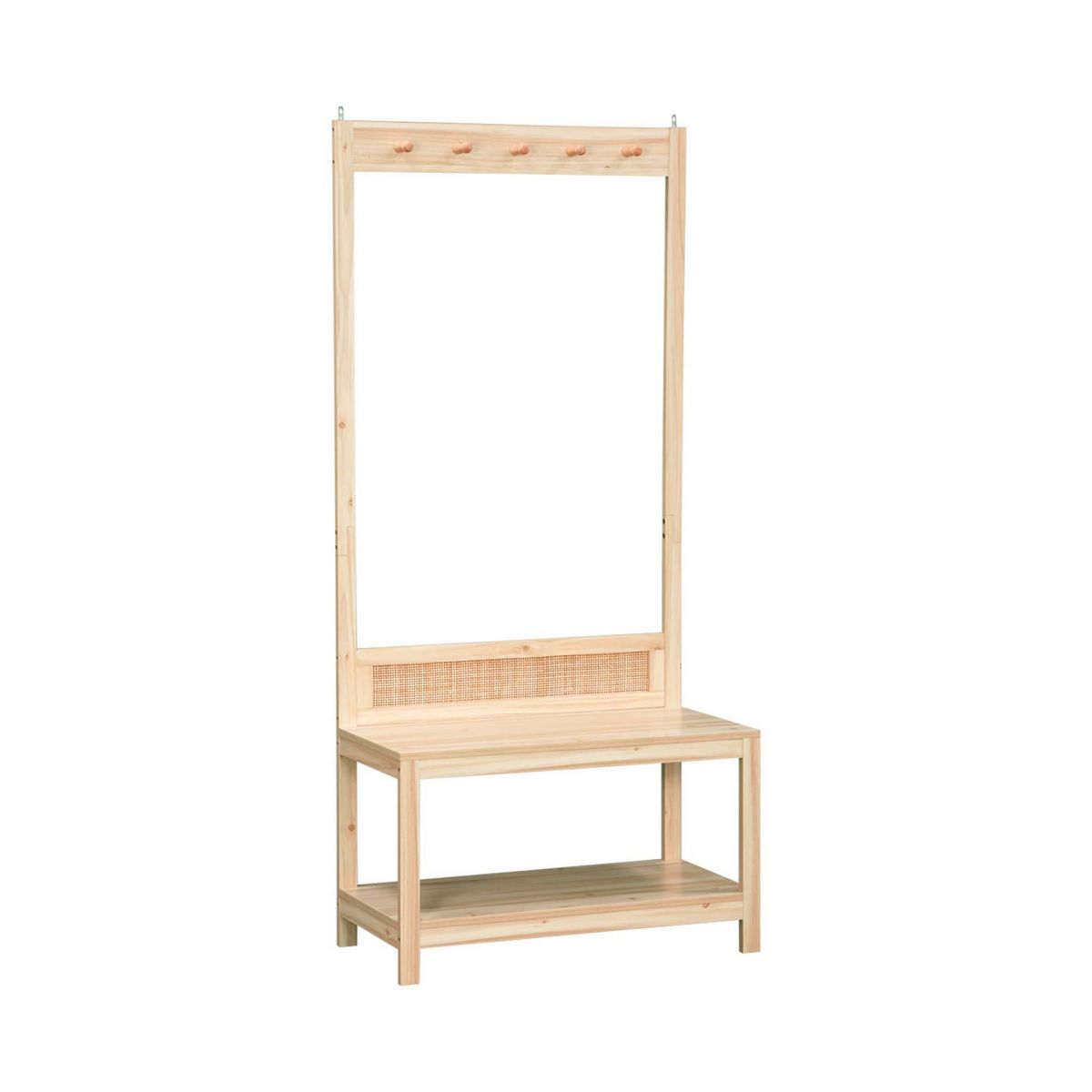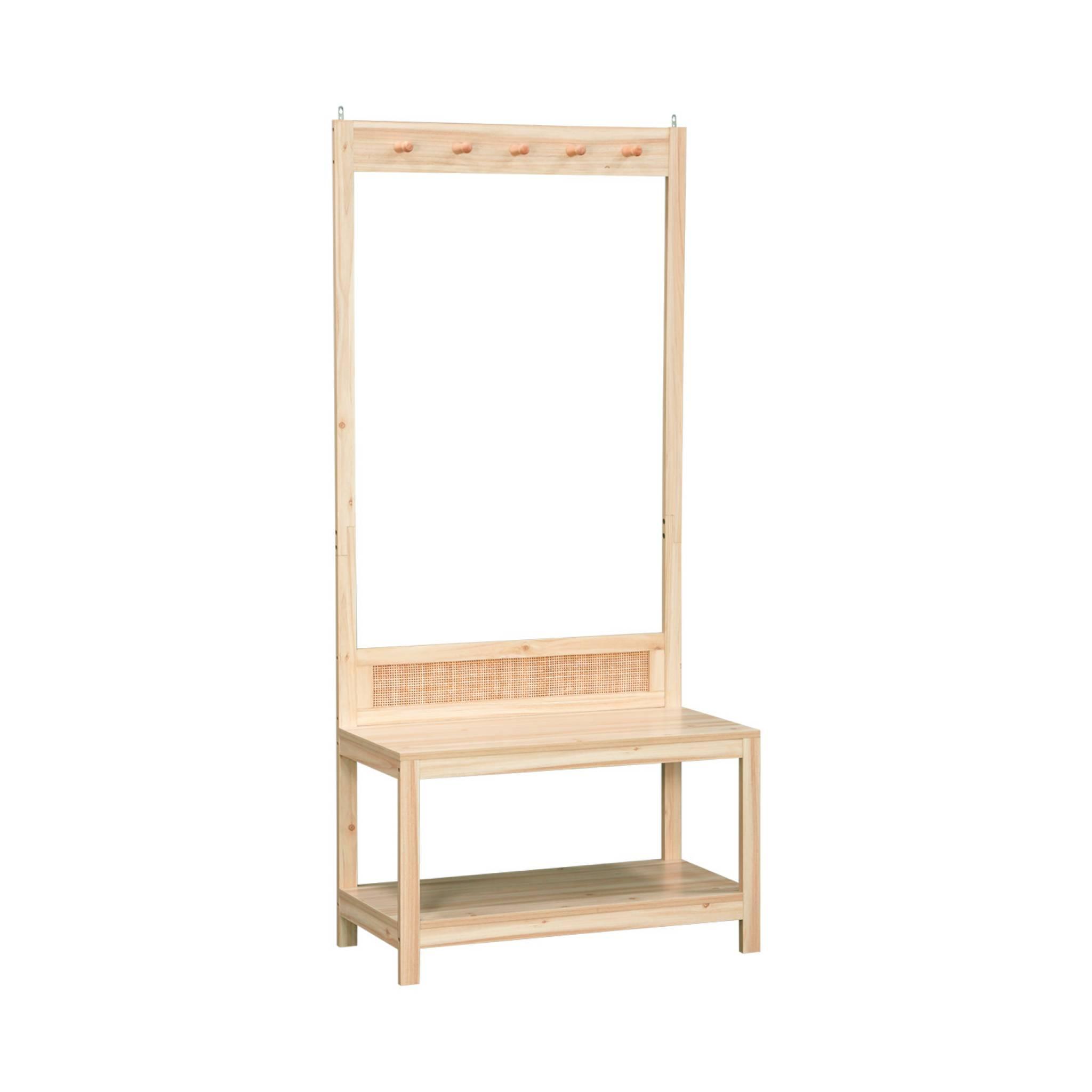 Les + produitIdéal pour une entrée 5 accroches Une étagère pour ranger les chaussures Un banc pour mettre ses chaussures Ce vestiaire d'entrée, mariage élégant de bois et de cannage, offre un charme intemporel et une élégance discrète. Il crée une atmosphère chaleureuse et accueillante dès l'entrée,