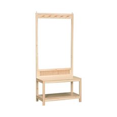 Outre son attrait visuel, ce porte-manteau se distingue par son ingéniosité fonctionnelle. Les 5 crochets offrent un espace pratique pour suspendre vos manteaux et sacs, tandis que l'étagère constitue un lieu idéal pour ranger vos chaussures en toute facilité. Le banc intégré, idéal pour l'enfilage de chaussures, confère à ce meuble une fonctionnalité exceptionnelle. Il représente ainsi la solution idéale pour instaurer une entrée accueillante et parfaitement organisée dans votre domicile.