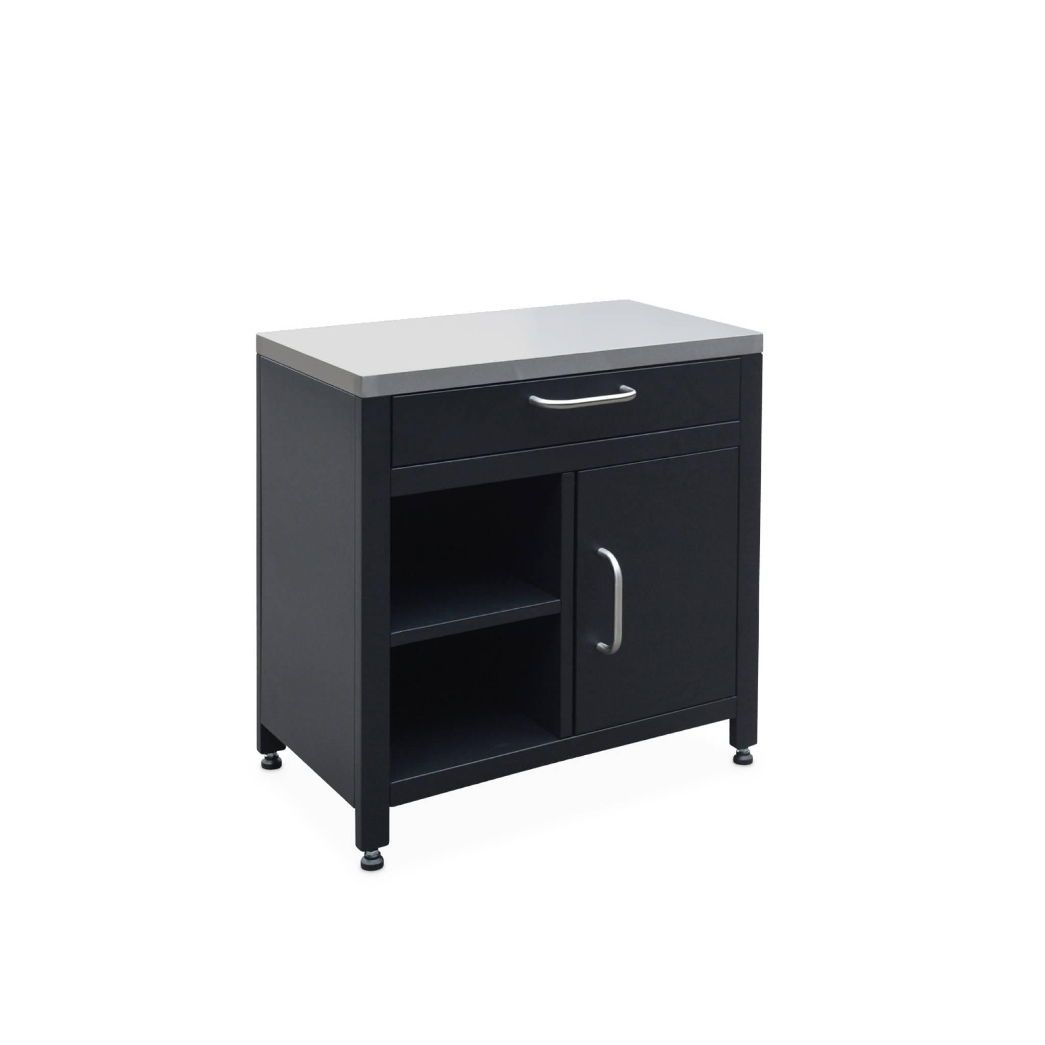 Meuble de cuisine extérieure en acier L80cm avec 1 tiroir. 1 porte et 2 étagères de rangement