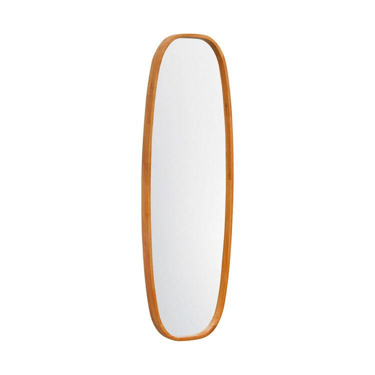 Miroir rectangulaire JAMIE en bois d'hévéa, bords arrondis, couleur bois clair, 2 tailles différentes