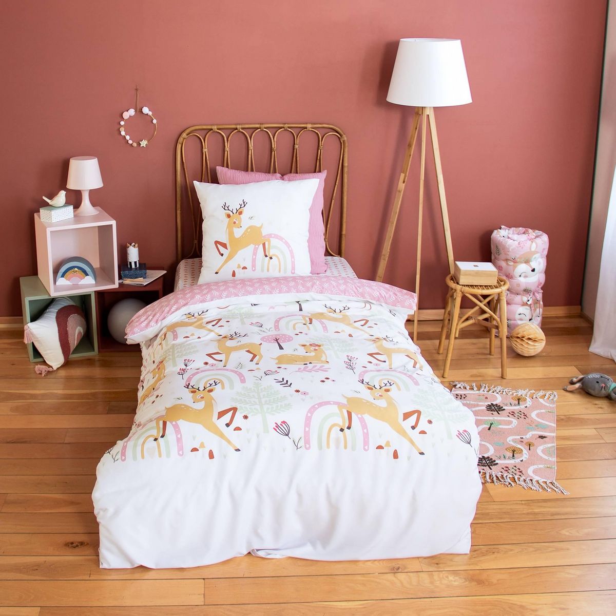 Avec cette parure de lit, un monde merveilleux s'invite dans la chambre de votre enfant. Il va adorer cette housse de couette colorée et joyeuse avec ces jolis motifs thème forêt enchantée.