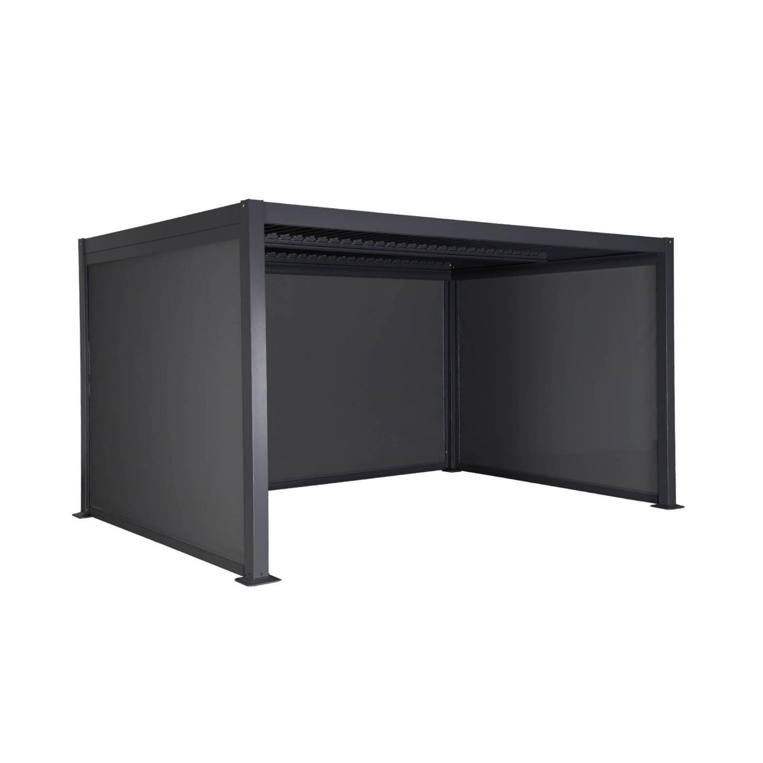 Pergola bioclimatique aluminium et acier 3x4m lames orientables + 2 stores 3m + 1 store 4m PALACE anthracite