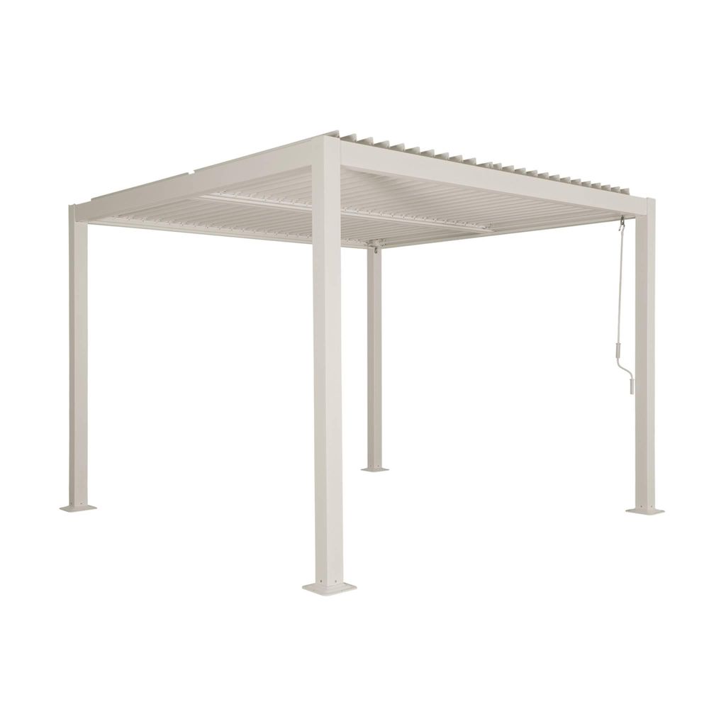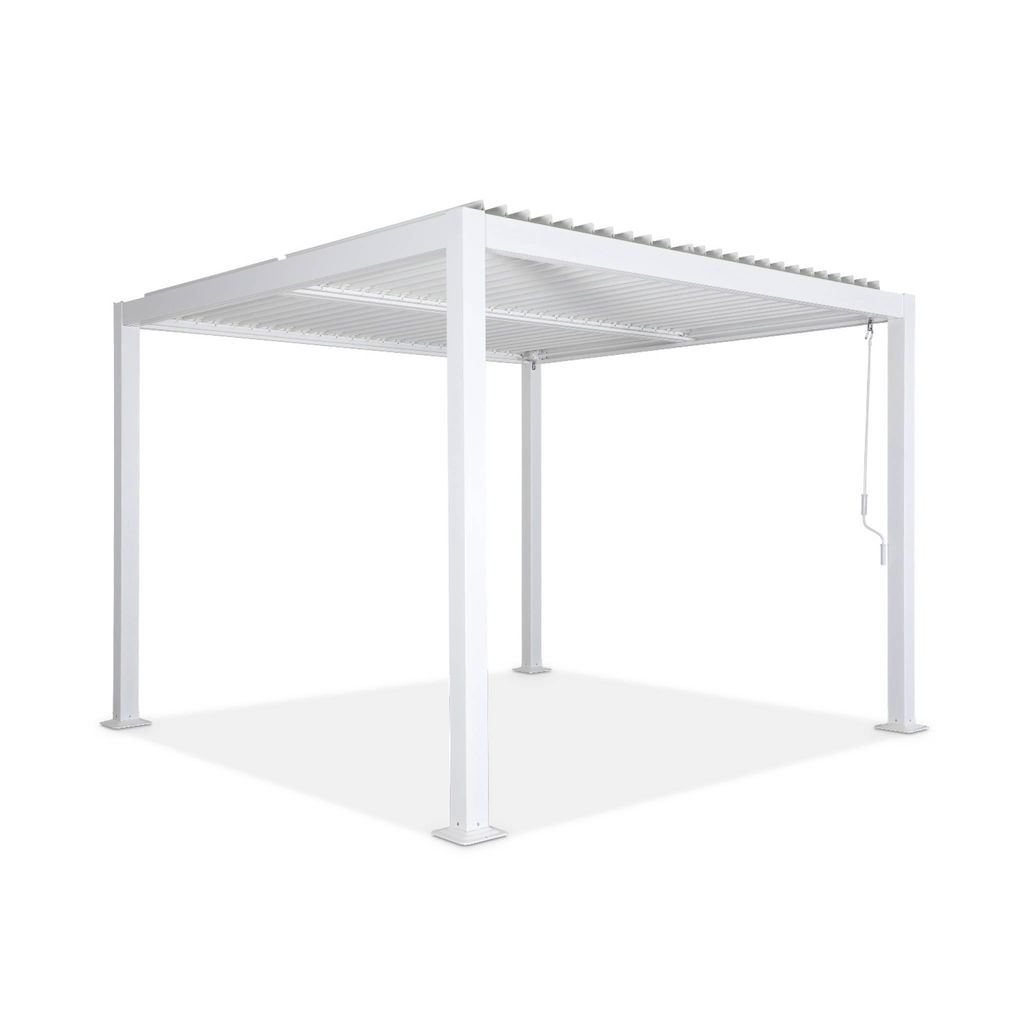 Elégante, elle s'intègrera parfaitement à votre extérieur. Elle trouvera sa place dans votre jardin, sur votre terrasse au dessus d'une table de jardin ou bord de la piscine. Elle peut aussi abriter un spa Une manivelle permet de choisir l'inclinaison des lames inclinables. Vous pourrez régler le flux lumineux et la ventilation. Le toit comprend une double rangée de lames orientables qui s'actionnent indépendamment. Vous aurez donc la possibilité d'apporter de l'ombrage uniquement sur la moitié de la pergola.