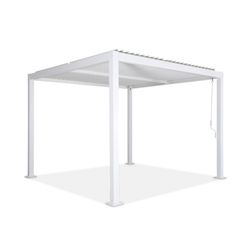 Passez des moments agréables et conviviaux dans votre jardin grâce à la pergola bioclimatique Palace 3 x 3 m. En hiver, vous serez protégés de la pluie et en été, vous pourrez profiter de son ombre et de sa fraicheur. Elle se fixe dans le sol, c'est donc un système permanent. Pas besoin de la ranger, vous en profiterez tout au long de l'année.
