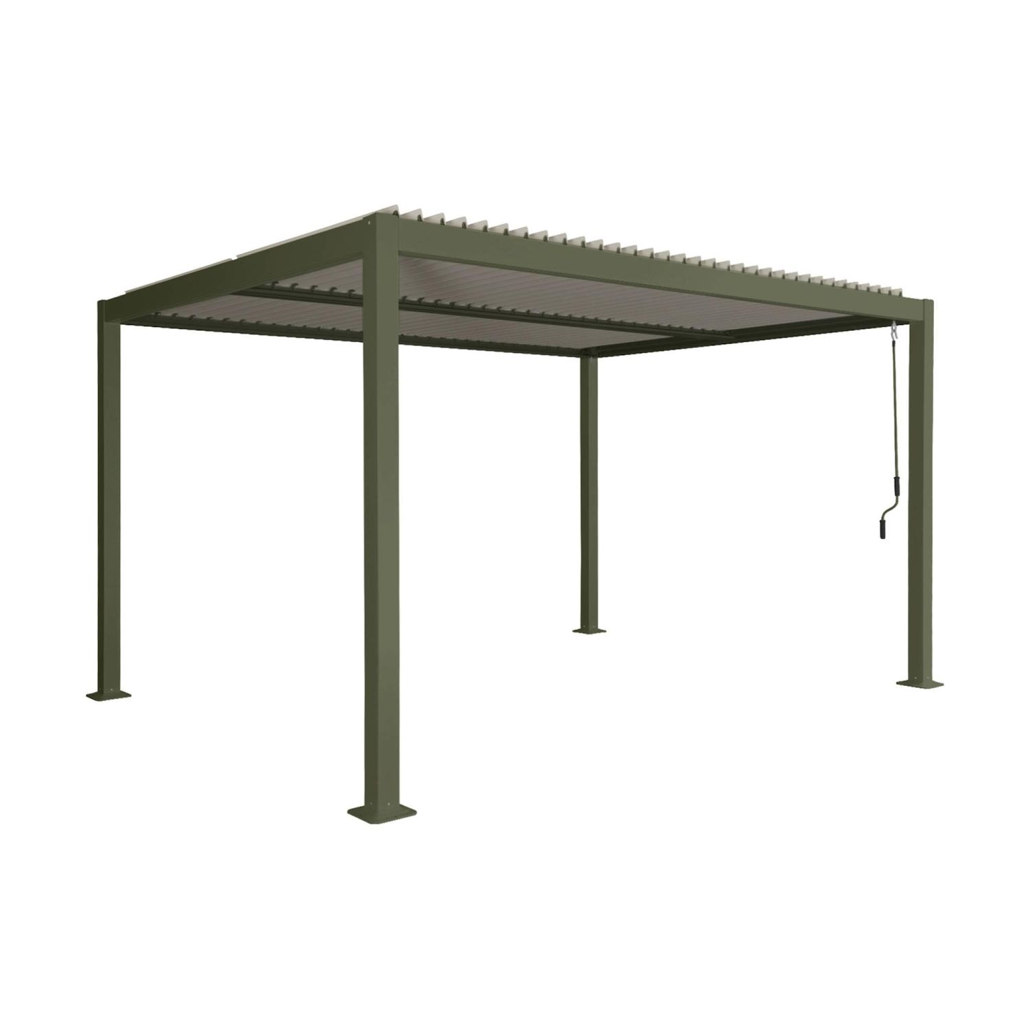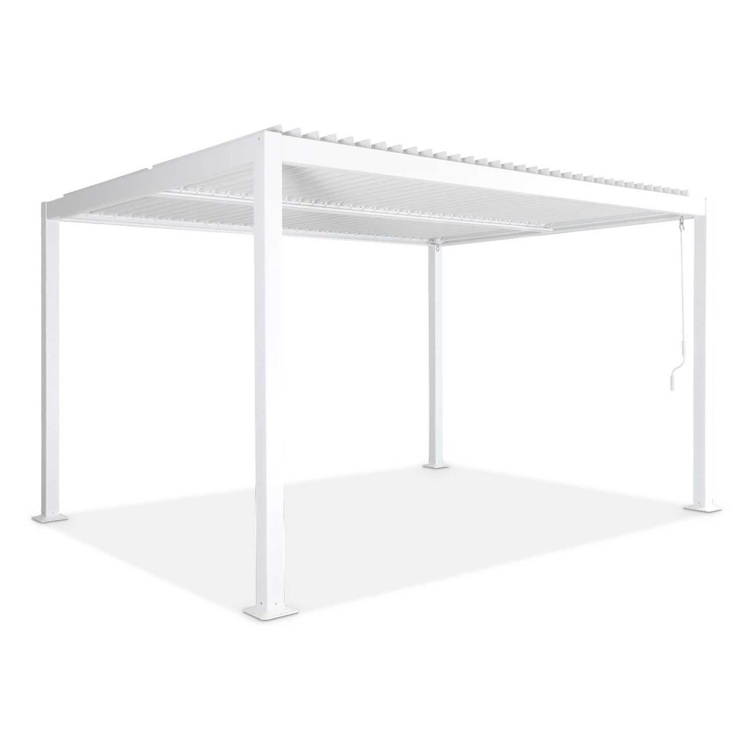 Elégante, elle s'intègrera parfaitement à votre extérieur. Elle trouvera sa place dans votre jardin, sur votre terrasse au dessus d'une table de jardin ou bord de la piscine. Elle peut aussi abriter un spa Une manivelle permet de choisir l'inclinaison des lames inclinables. Vous pourrez régler le flux lumineux et la ventilation. Le toit comprend une double rangée de lames orientables qui s'actionnent indépendamment. Vous aurez donc la possibilité d'apporter de l'ombrage uniquement sur la moitié de la pergola.