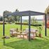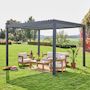 Passez des moments agréables et conviviaux dans votre jardin grâce à la pergola bioclimatique Triomphe 3 x 4 m. En hiver, vous serez protégés de la pluie et en été, vous pourrez profiter de son ombre et de sa fraicheur. Elle se fixe dans le sol, c'est donc un système permanent. Pas besoin de la ranger, vous en profiterez tout au long de l'année.