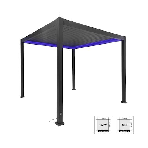 Pergola bioclimatique aluminium motorisée 3x3m avec éclairage LED Triomphe