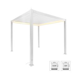 Pergola Bioclimatique électrique 3x3m blanc. aluminium. à lames orientables avec éclairage LED