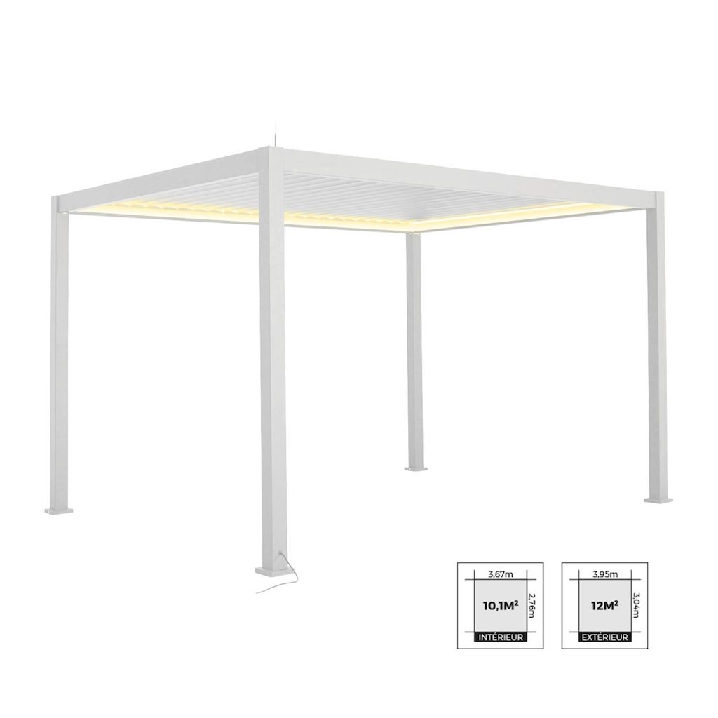 Pergola bioclimatique aluminium motorisée 4x3m avec éclairage LED Triomphe