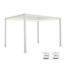 Elégante, elle s'intègrera parfaitement à votre extérieur. Elle trouvera sa place dans votre jardin, sur votre terrasse au dessus d'une table de jardin ou bord de la piscine. Elle peut aussi abriter un spa. La télécommande vous permet de choisir l'inclinaison des lames inclinables. Vous pourrez régler le flux lumineux et la ventilation.