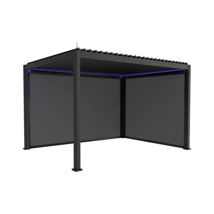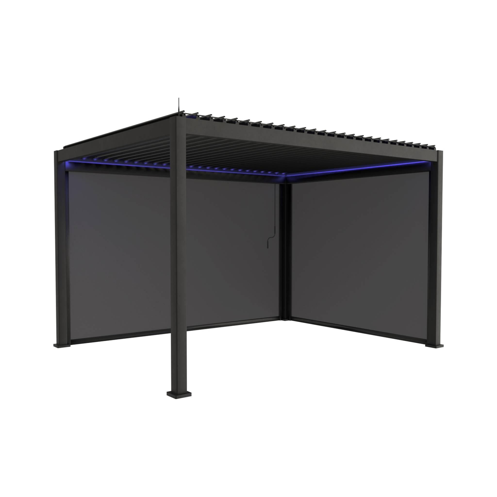 Pergola bioclimatique électrique 3x4m. aluminium. à lames orientables avec éclairage LED + store 3m + store 4m