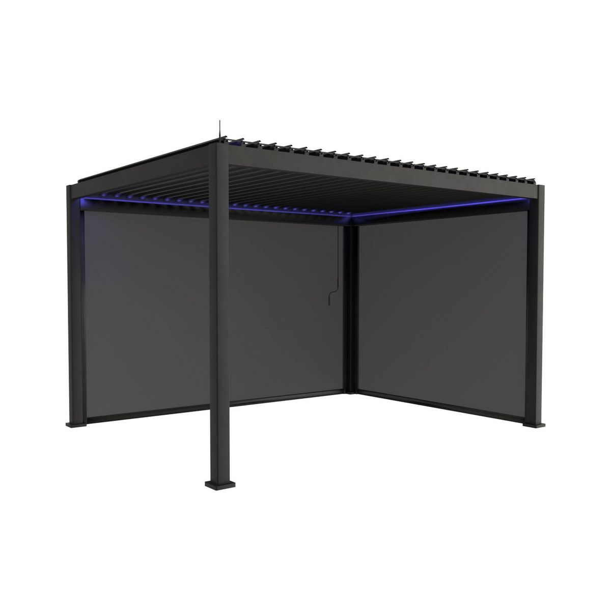 Cette pergola est équipée de LED intégrées tout autour de la structure. Grâce à la télécommande vous pourrez créer différentes ambiances en variant les intensités, les modes et les couleurs.