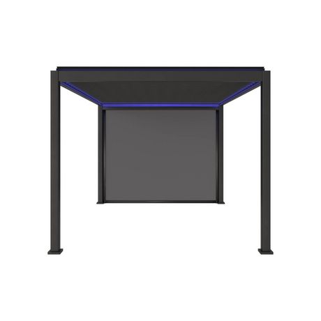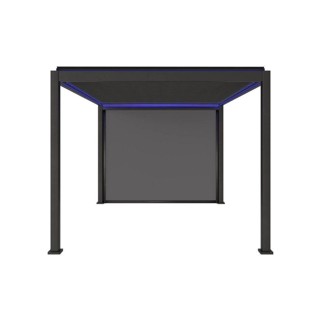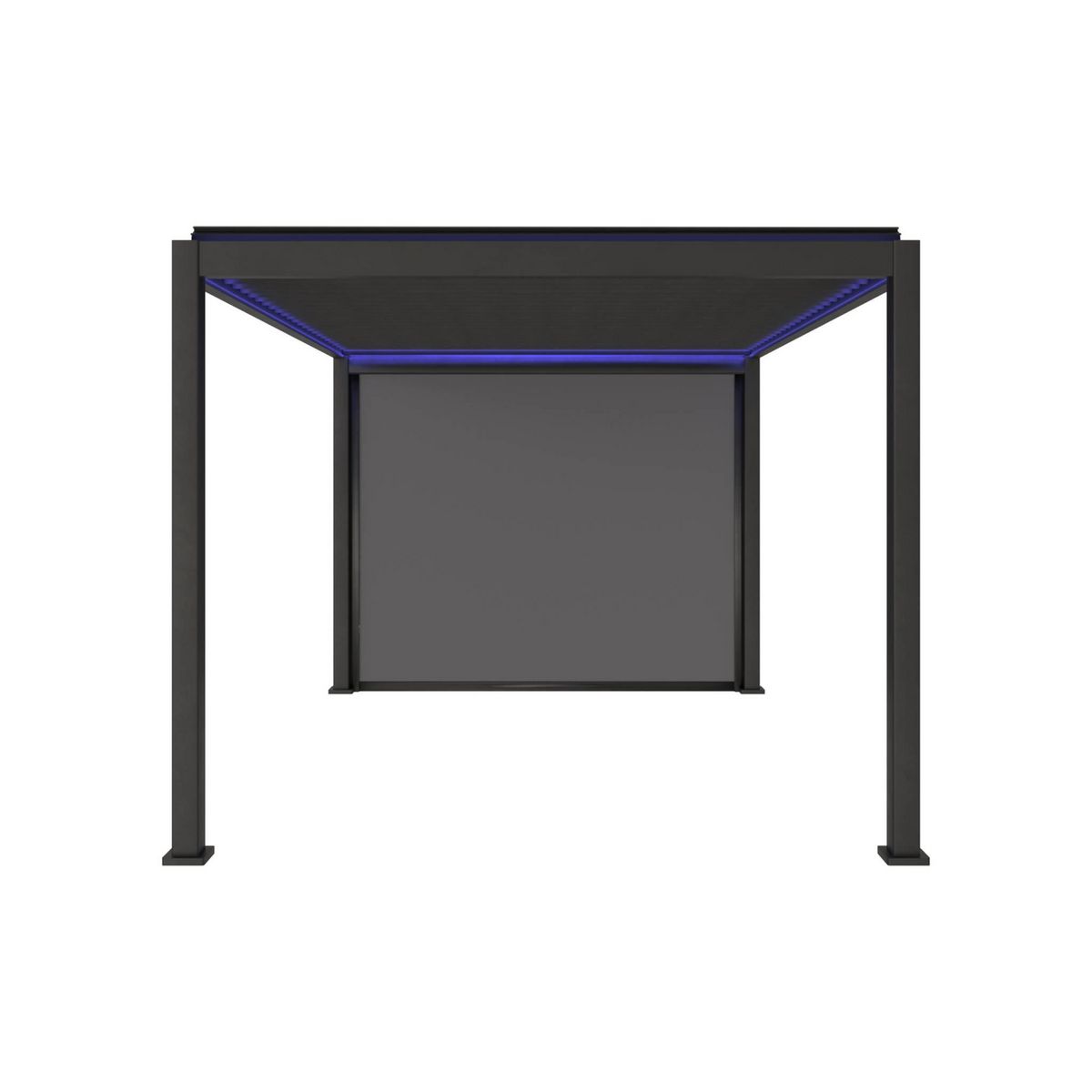 Pergola bioclimatique électrique 3x4m. aluminium. à lames orientables avec éclairage LED + store 3m
