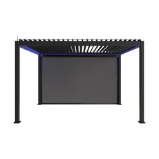 Pergola bioclimatique électrique 3x4m. aluminium. à lames orientables avec éclairage LED + store 4m