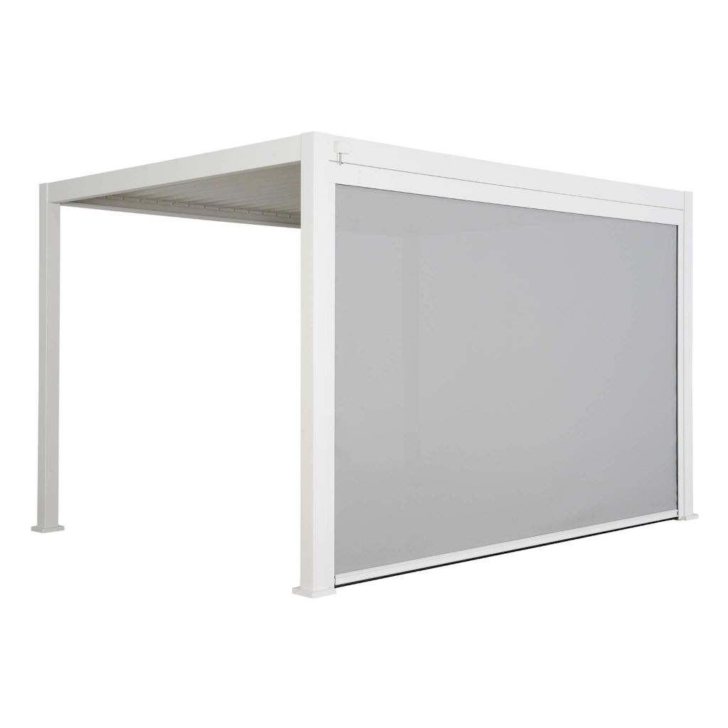 Ajoutez plus de confort à votre pergola bioclimatique grâce à ce store vertical en aluminium qui vous protège du soleil et des intempéries. En cas de vent ou de pluie, il vous suffira simplement de le baisser manuellement. Sa hauteur s'ajuste à vos besoins, elle n'est pas prédéfinis. Bien pensé, il vous protège aussi des rayons UV en été. Il vous préserve aussi des regards indiscrets sans être complètement opaque. Ce store est fabriqué avec des matériaux de qualité, la paroi latérale est en aluminium et la toile en textilène. Pour plus de sécurité, nous vous conseillons, en cas de vent fort (plus de 50km/h) ou d'absence de remonter le store.