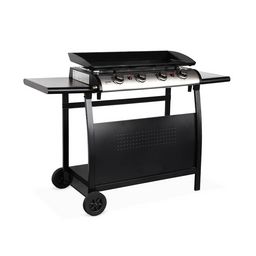 Plancha au gaz 4 brûleurs sur chariot - Porthos - 10kW. plancha à gaz avec desserte . cuisine extérieure. plaque émaillée. inox. barbecue