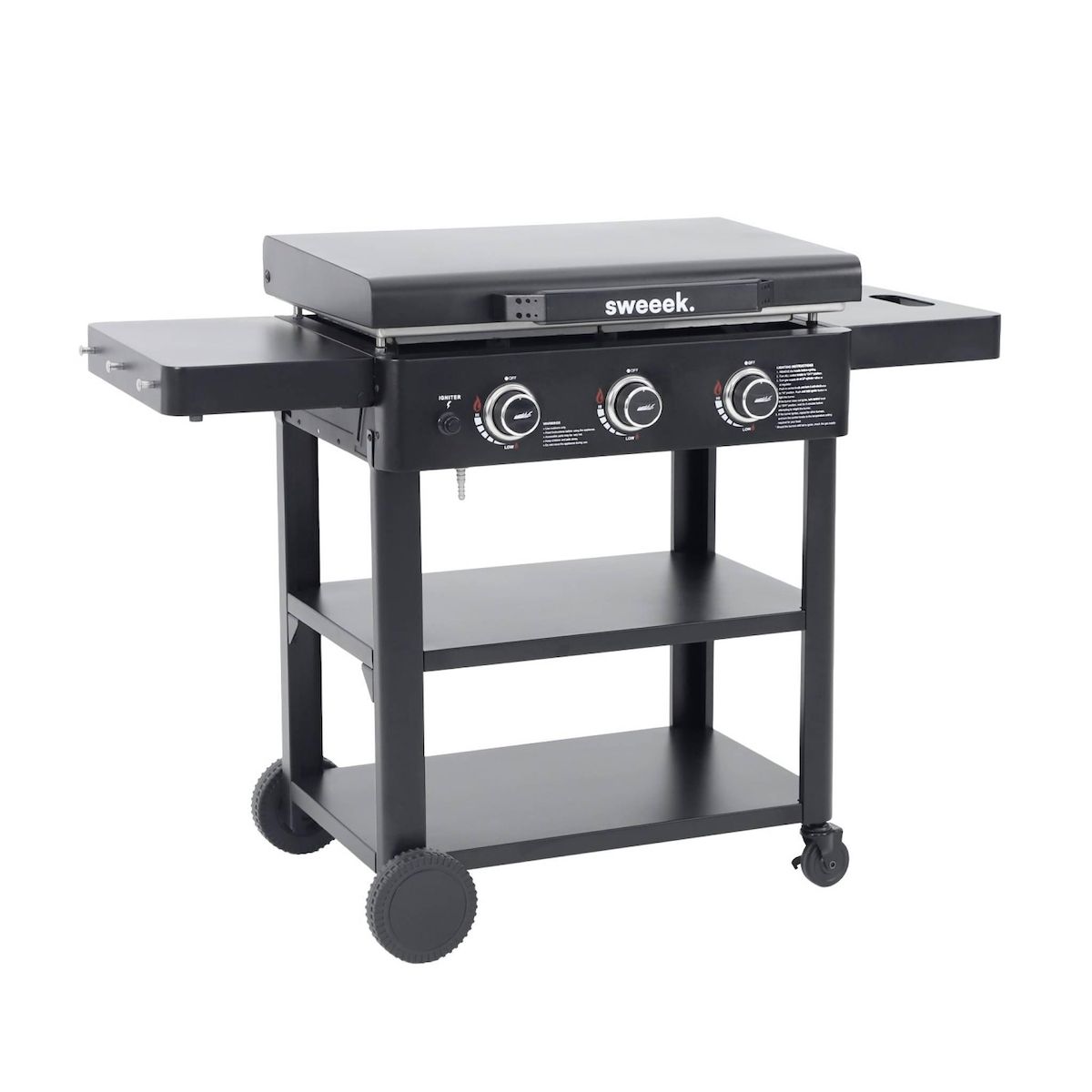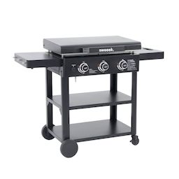 Plancha gaz 3 brûleurs acier inoxydable 12kW avec chariot noir - Raoul