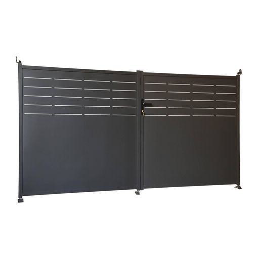 Portail de jardin acier galvanisé anthracite 2 portes avec serrure et poignée. fixation mur et sol - Axis