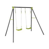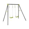 Portique balançoire double en métal BISE. 2 places. noir et vert. acier. L 217 x P 153 x H 195 cm